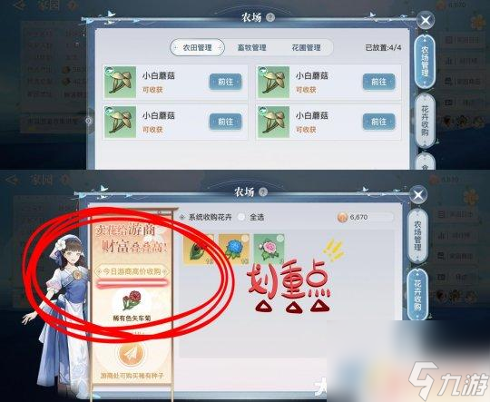 进入家园总览-农场,可以对农田和畜栏便捷管理,种植的花卉还可以卖给游商赚小钱钱哦!