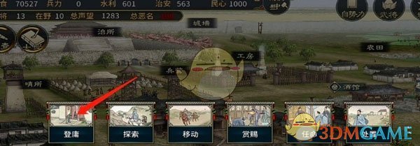 1、招募在野武将需要先进入【人事】,然后选择进入【登庸】界面;