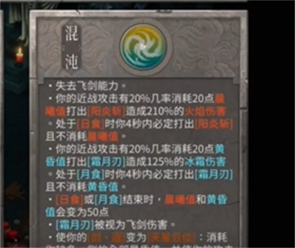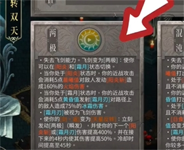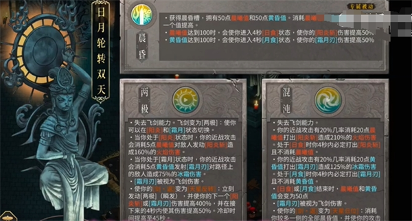 同样也是失去飞剑来回切换日月形态,不过这次变成自动挡,需要我们在日食或者月食4秒内打出爆发伤害,所以这个流派的攻速非常重要