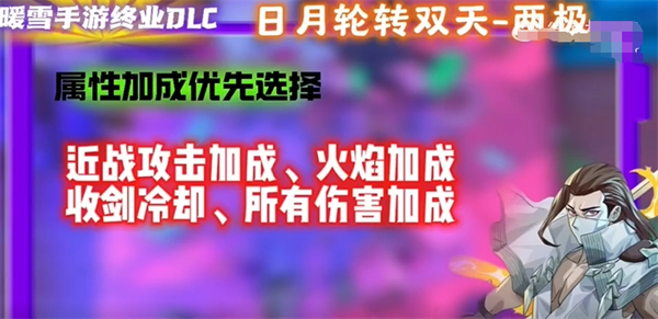 属性加成优先选择近战攻击加成、火焰加成、收剑冷却、所有伤害加成