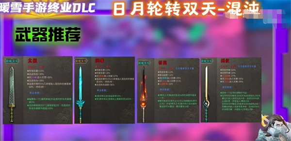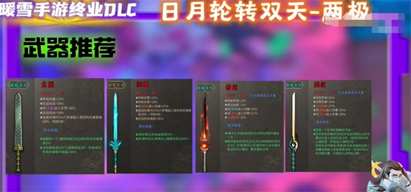 12、武器推荐:太祖、回魂、吞星、两仪。