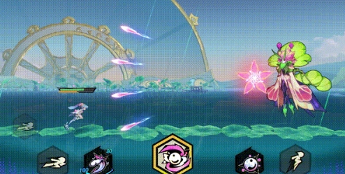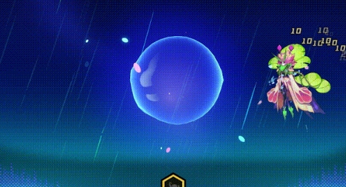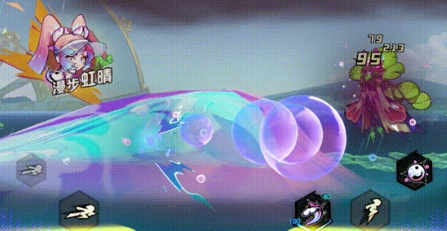 唐霜召唤幸运水浪,凝结成为超级泡泡糖,破裂后散成无数水波泡泡,命中敌人时造成水元素伤害,自身接触则回复生命值。