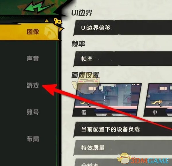 2、然后在游戏设置页面,点击下方的游戏设置选项前往;