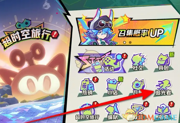 1、首先我们点击菜单,然后在弹出的页面点击追光者前往详情页;