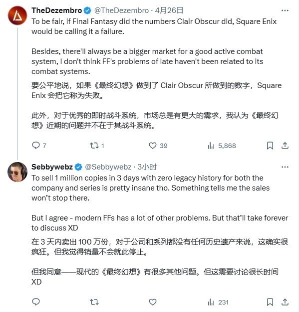 《光与影:33号远征队》的爆火在社交媒体上掀起了一场关于《最终幻想》系列未来走向的激烈讨论。