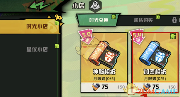 2、接着在小店内,找到时光小店,选择加密相纸进行购买;