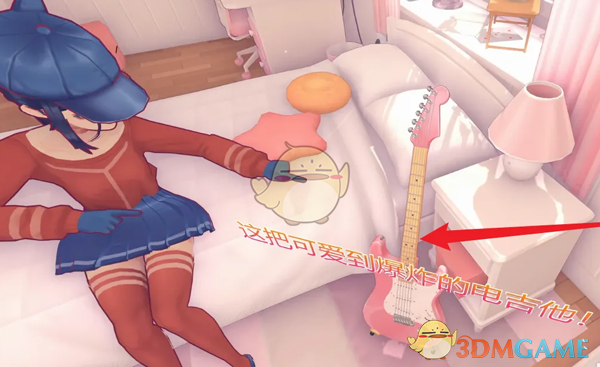 2、接着在和米塔的互动中,点击床边下方的电吉他;