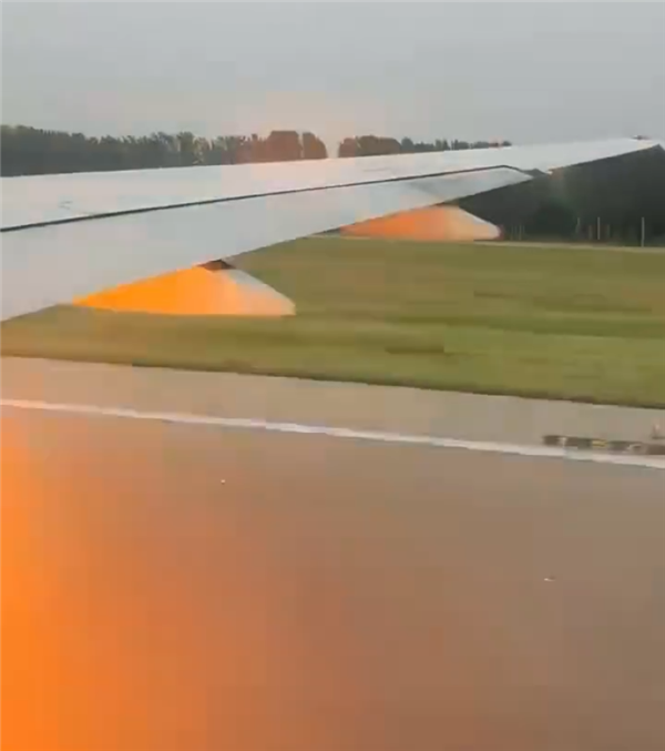 乘客拍摄的视频显示,在起飞加速滑行时,右侧发动机突然窜出火光、黑烟并且有疑似零件散落。