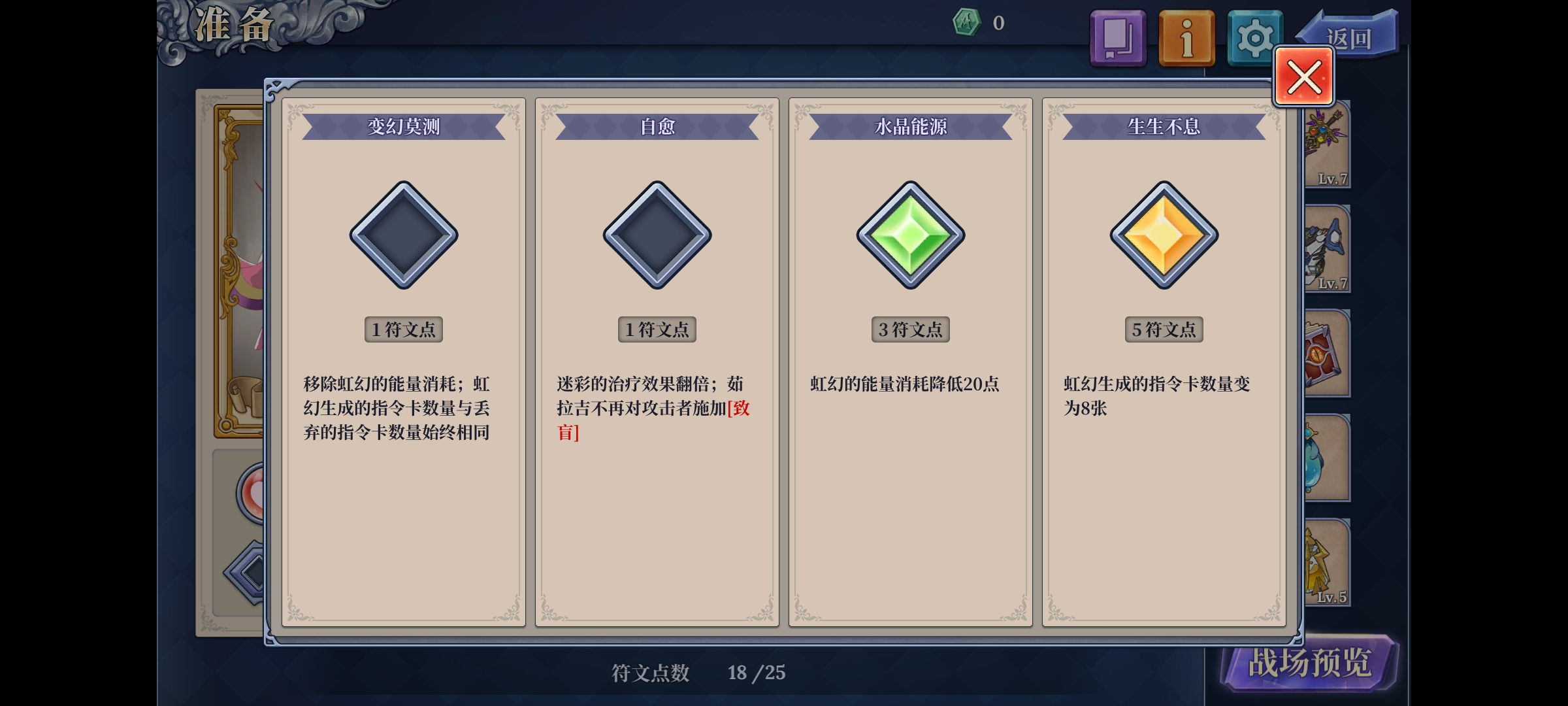 其中,1号符文-魔龙降世可点可不点,不点可以配合队伍快速清图,点了打萨琪亚的幻影更方便些。