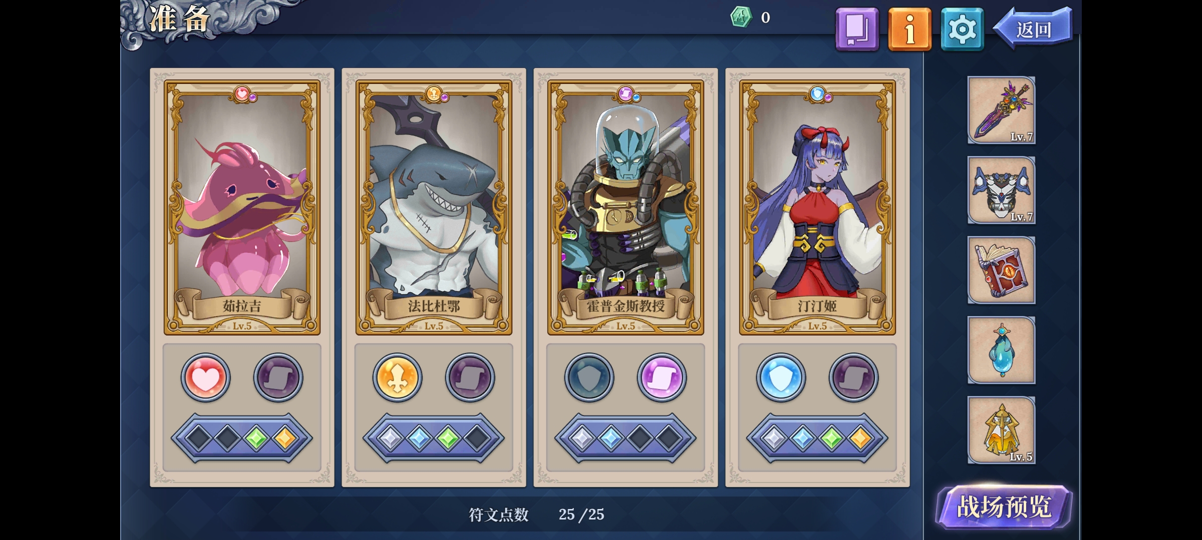 2、减益直接叠最高层。配合教授、汀汀姬的技能/符文效果,直接1回合就上满满层debuff,尤其像蜘蛛boss这种硬挺并且群攻2回合的,教授给其上满减益可以直接硬抗。