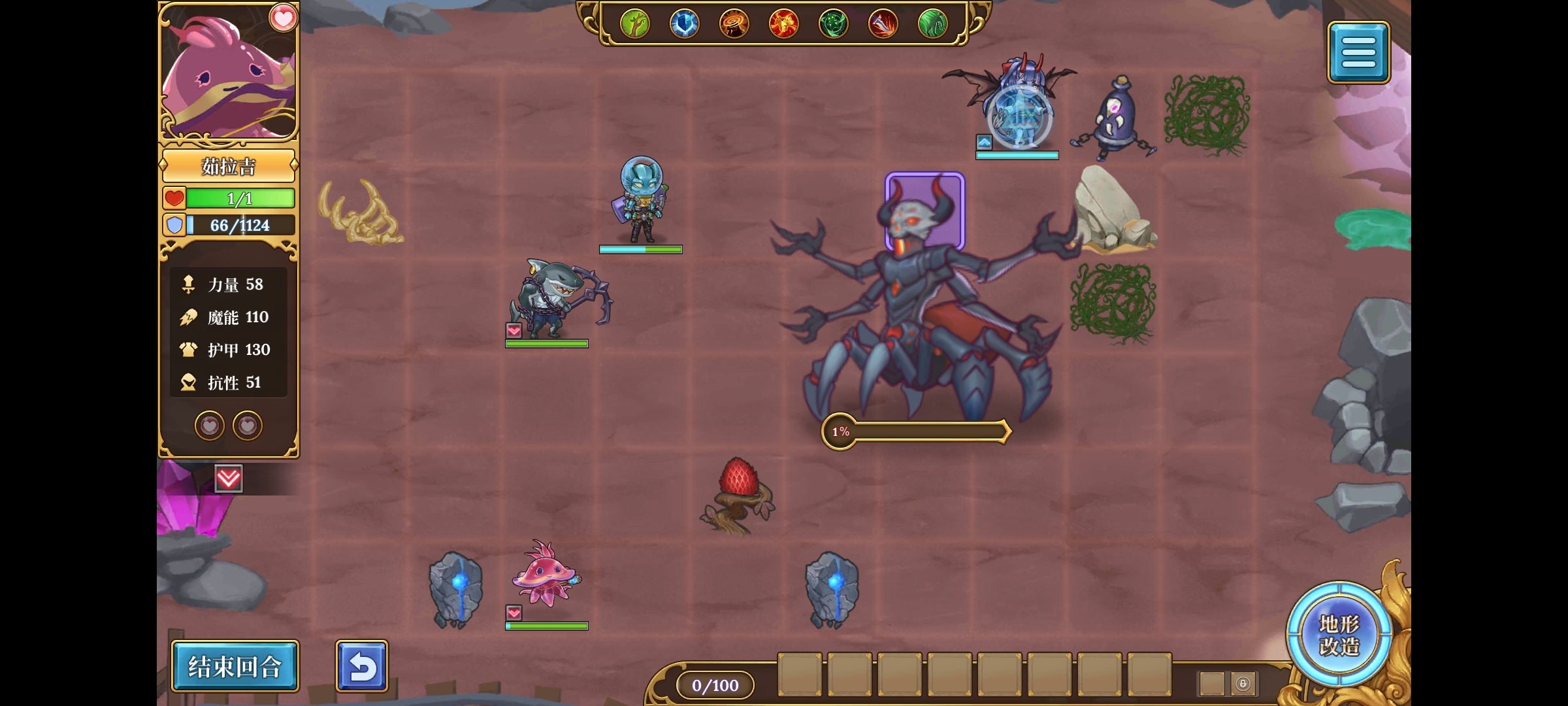砍了闪电云然后硬生生被控几个回合,白白浪费时间,或者该词条+蜘蛛boss,很容易造成水母之类的辅助被硬控,导致第二回合续不上盾,被范围攻击弄死。(必要时可以把鲨鱼的符文点数给教授,点出远程援助,更从容应对控制)。