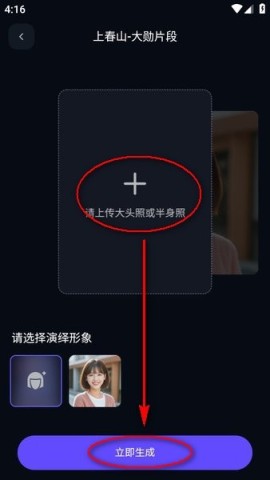 3、最后上传一张大头照或半身照,点击“立即生成”,就能看到最终效果了;