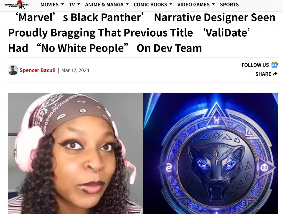 前Sweet Baby公司员工兼EA《黑豹》助理叙事设计师Dani Lalonders就曾公开自豪地宣称,其之前的开发团队不要白人。她特意并积极地避免雇佣白人参与她之前的独立游戏《ValiDate》的制作,因为她担心白人的存在会给开发团队的非白人成员带来“不安全”的工作环境。