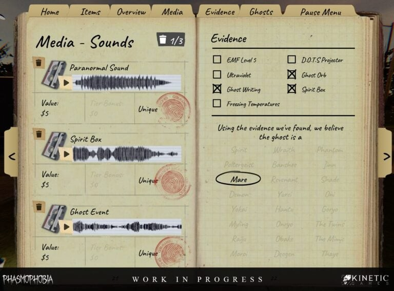 “编年史”更新将重新定义幽灵猎人们收集证据的方式。日志将进行完全重新设计,“照片”标签页将被全新的“媒体”标签页取代。该标签页将把所有捕获的证据整理到三个部分——照片、视频和新的录音——提供一个更丰富、更身临其境的调查体验,玩家可以在一个地方记录照片、视觉和新的诡异音频证据。调查员现在需要填满一整本独特的书才能完成一次完美的调查,其中包含新的超自然瞬间可供捕捉——从EMF峰值到幽灵互动,再到对异界形态的惊鸿一瞥。