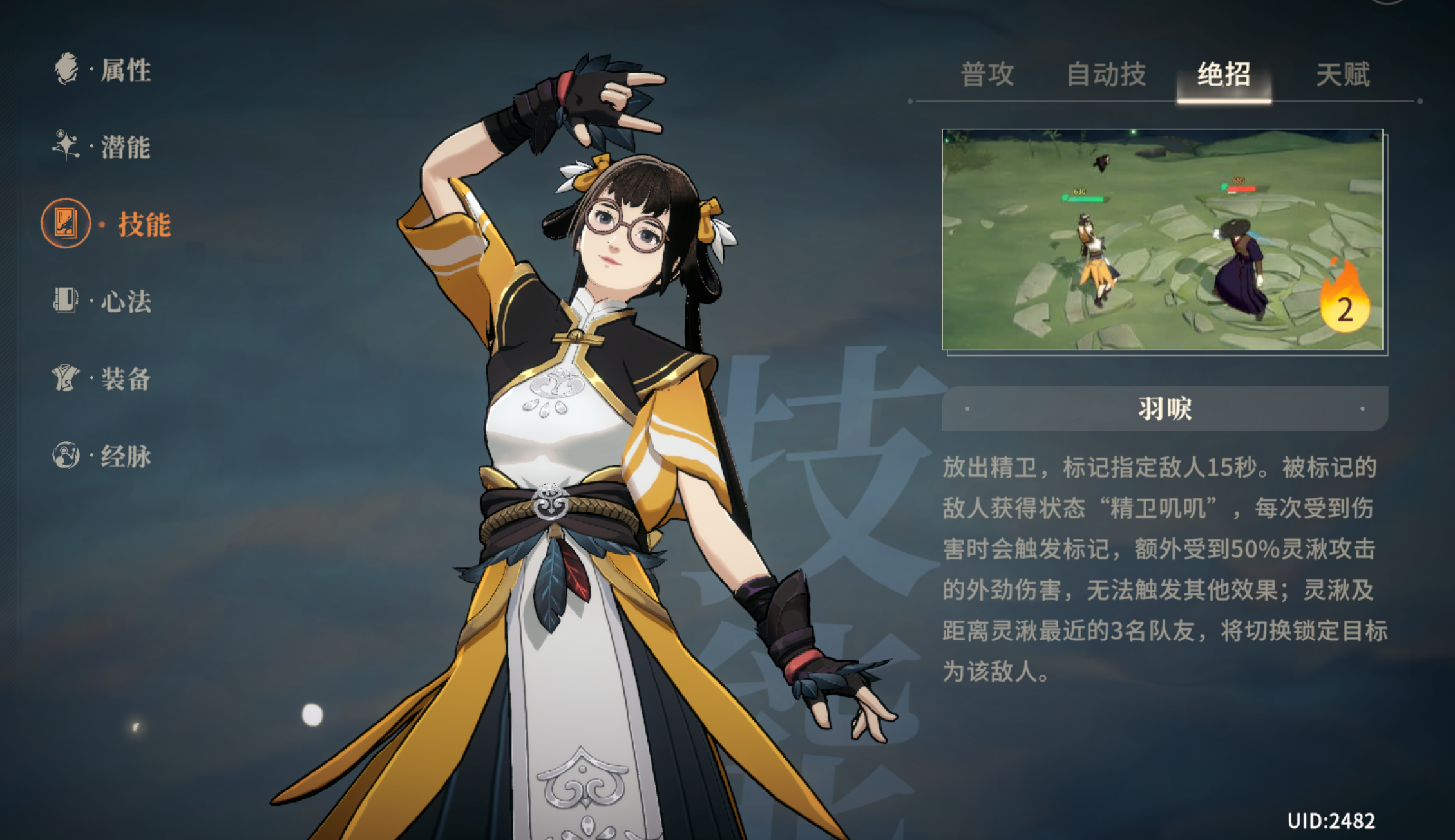 小核心机制-绝招挂上去,马上给敌人上一个状态”双翼蔽日“,伤害增加30