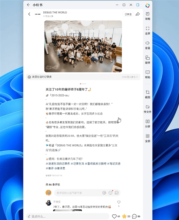 但有应用宝后:在电脑上打开小红书移动版 → 找到帖子截图标注