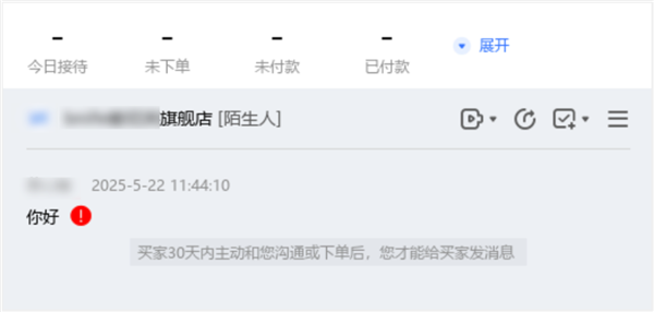 可成卖家后,小雪就失去了主动发起对话的权利。