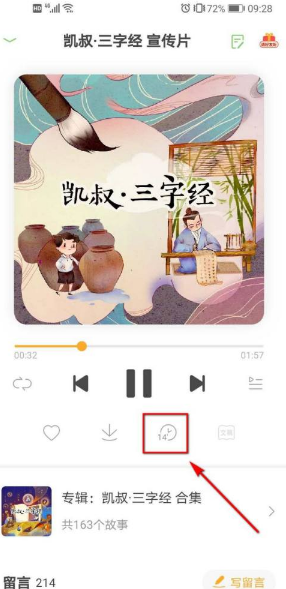 2、进入故事聆听界面,找到时钟图标并轻触它。