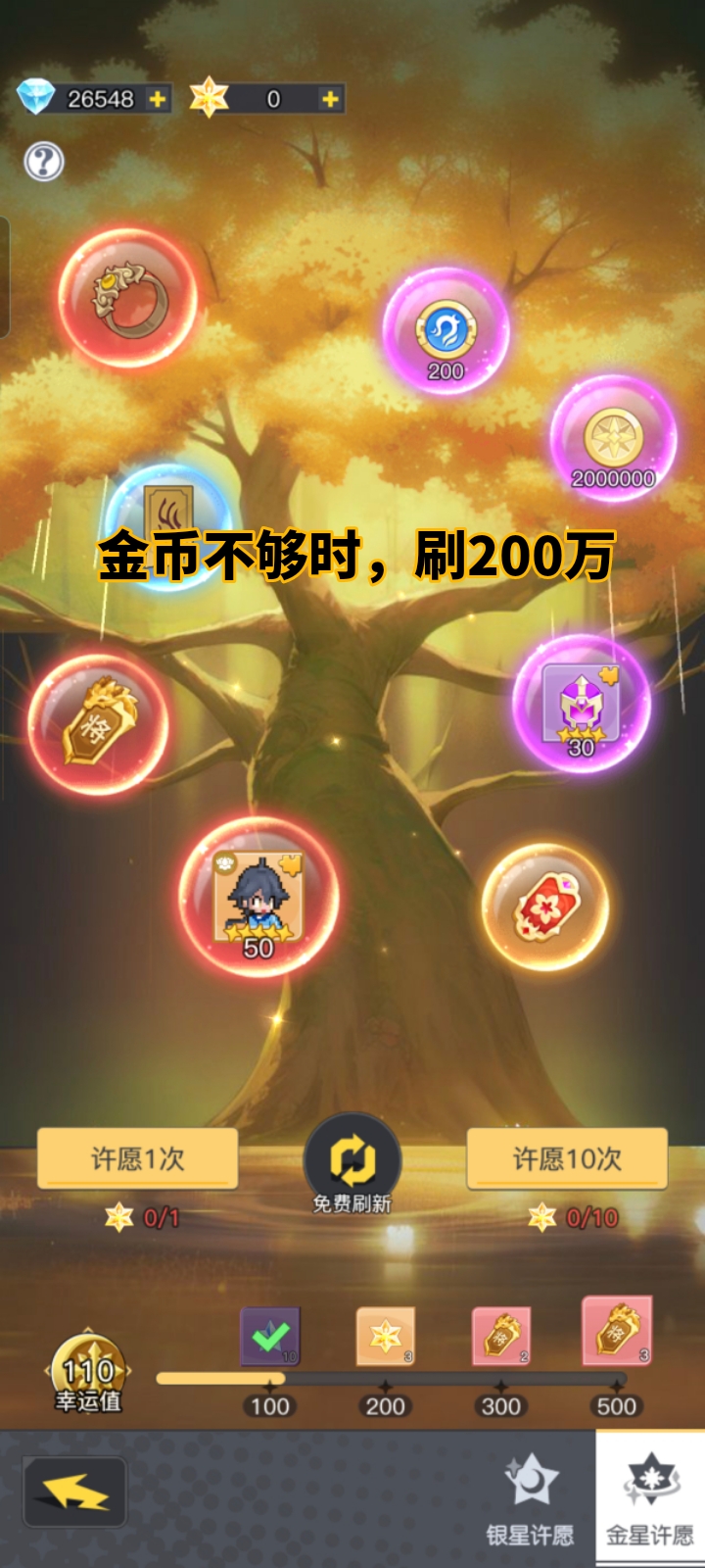 3.计算下来可能会缺金币,保险起见,大家可以攒许愿星(金),刷新等有200W金币的时候再抽!(图5)