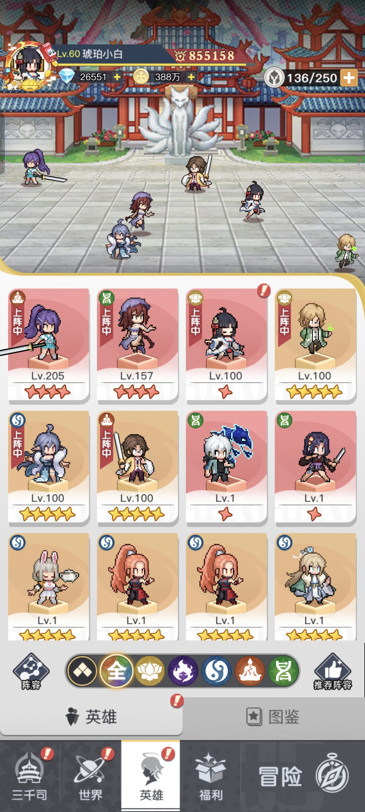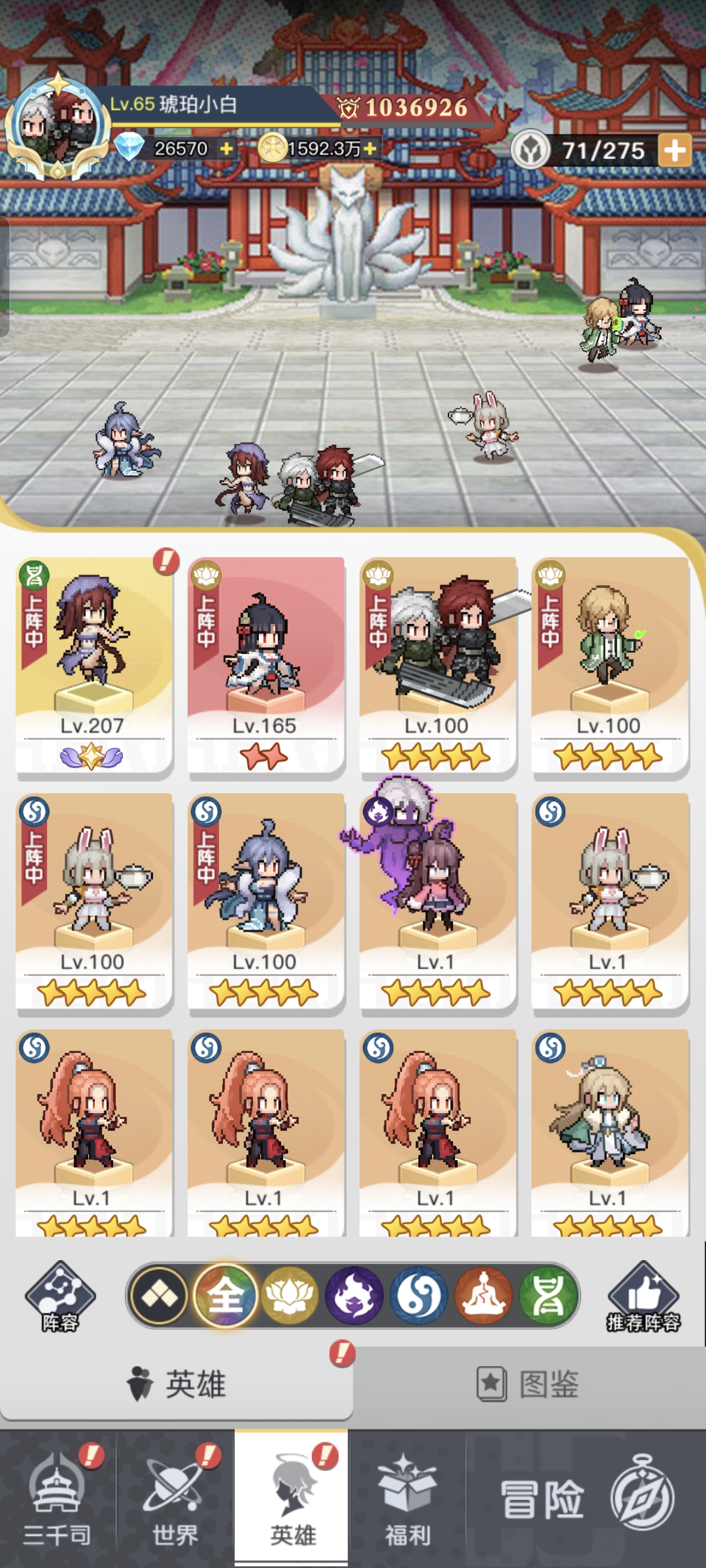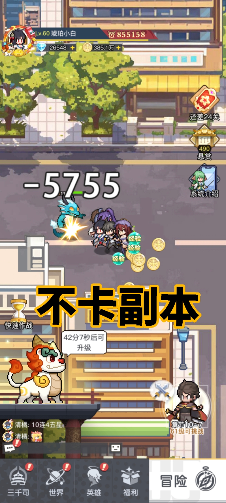 我目前这样操作玩下来也挺顺,不卡副本(如图6),钻目前还有26000+的原因是黑白小飞抽奖中了一次。不然只有6000+钻,如果大家不每天花5400钻抽的话,钻可以更多的!我是连续抽了4天了。