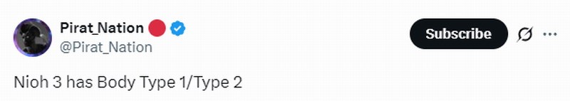 《仁王3》试玩Demo已上线PS商店。游戏博主Pirat_Nation透露,该作角色创建系统中的“身体类型”选项没有采用男/女传统分类,而是采用了类型1/类型2分类。