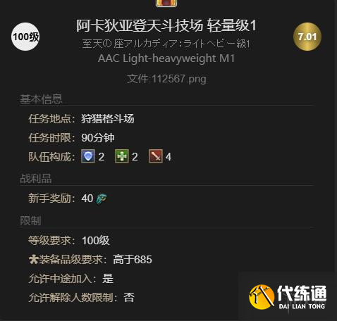 3、该副本任务时限90分钟,100级才能挑战,装备品级要高于685。