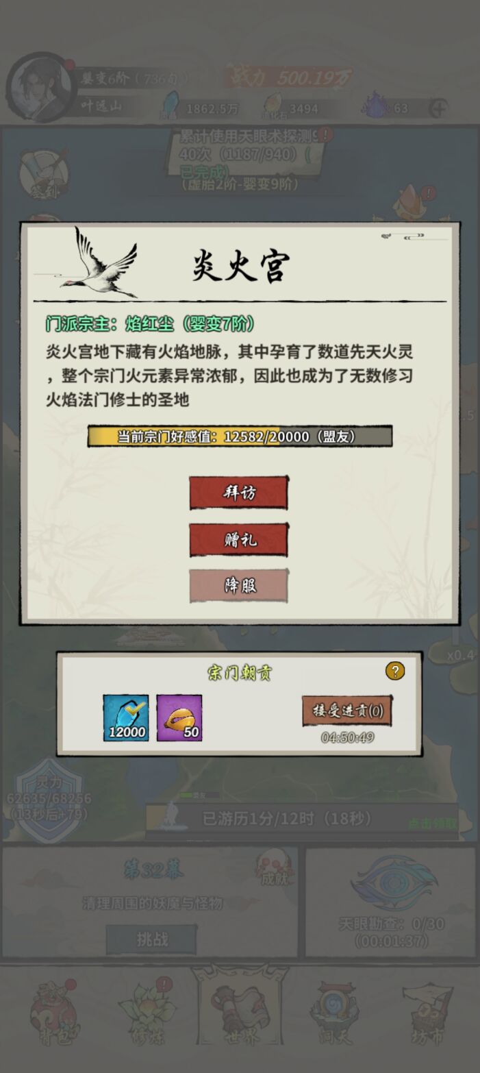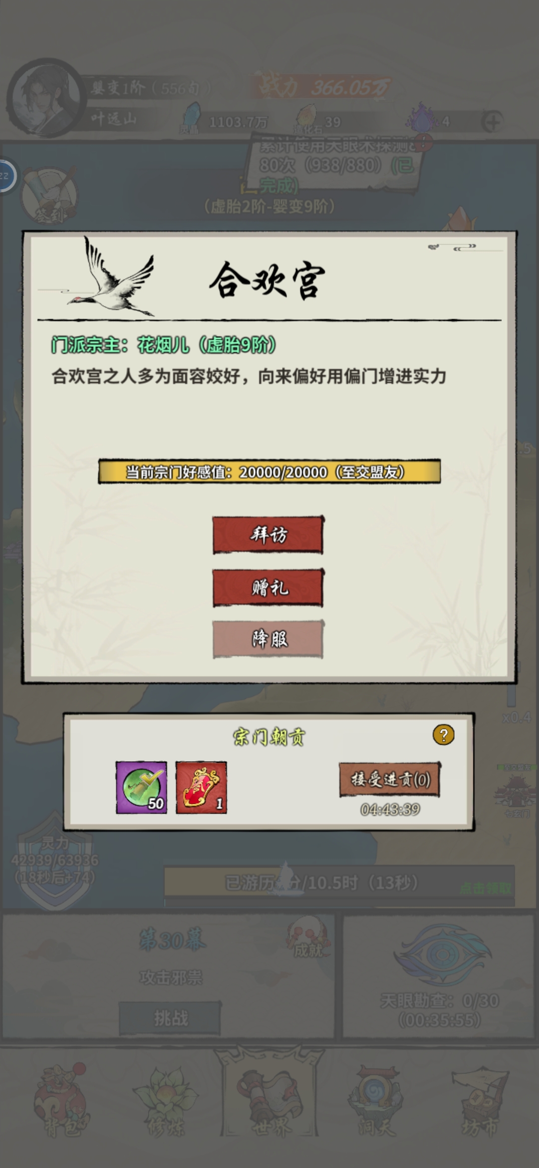 顺带一提,盟友和至交盟友之间有奖励区别,比如合欢宗,盟友只有30感悟和1个低级召唤,而至交盟友有50感悟和1个高级召唤,有的时候别盟友了就使劲点,可以攒次数的