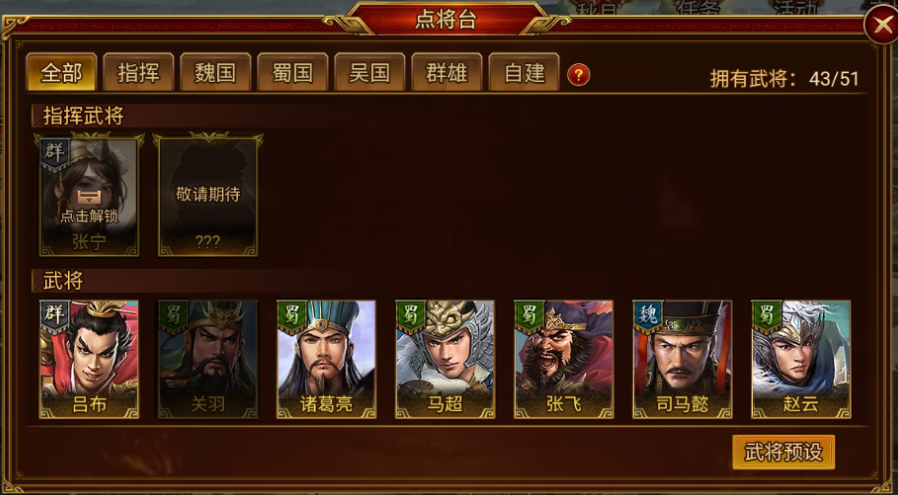 ● 指挥技上线后,『点将台』界面将新增【指挥】栏目,点击“指挥武将”即可进行指挥技解锁或查看指挥技信息;