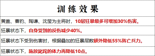 ● 狂暴状态可降低叱咤技能的消耗,此时自身不能发起单挑,但可以被敌人单挑;