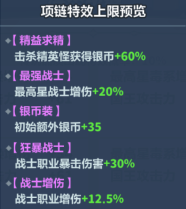 战士职业的专属特效可在项链部位洗炼而出,推荐特效如下图所示: