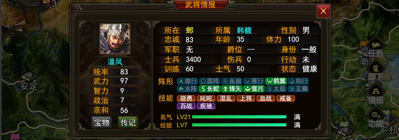※偃月阵,可以作为潘凤和邢道荣的主要攻击阵形,但是二者武力方面需要培养。