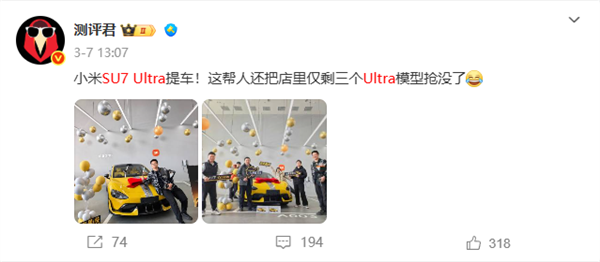 6月20日消息,数码博主“测评君”宣布准备把自己的小米SU7 Ultra卖掉,“落地56w,最近41w出掉”。