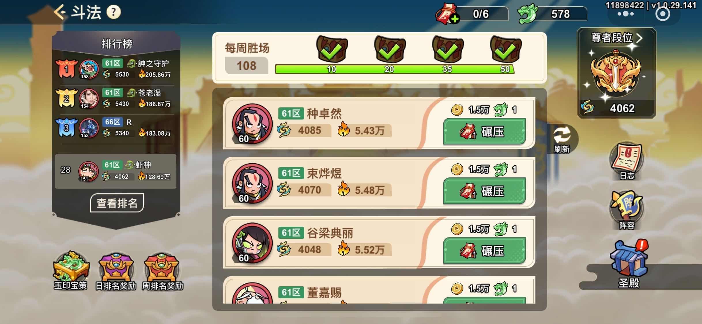 4、斗法的奖励非常丰富,特别是周奖励,所以每周日需要存券,争取获得好的名次。