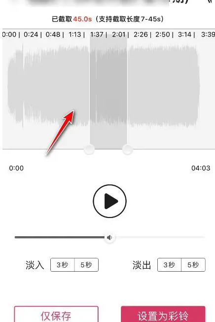 滑动滑块截取歌曲片段,点击设置为彩铃即可。