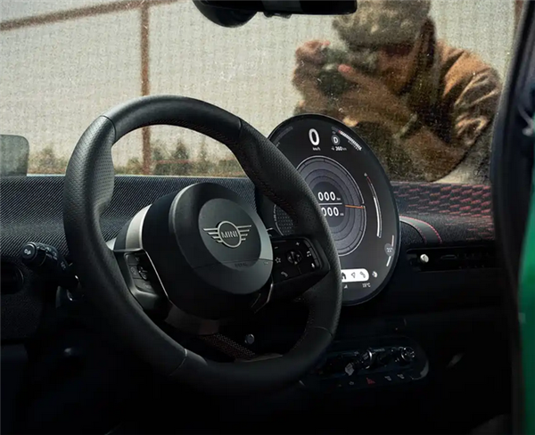 进入车内,新车在保留MINI原有的设计风格外,还融入了更多的科技元素,中控台、方向盘、座椅等部位也都有专属的格子旗和红色运动化元素。