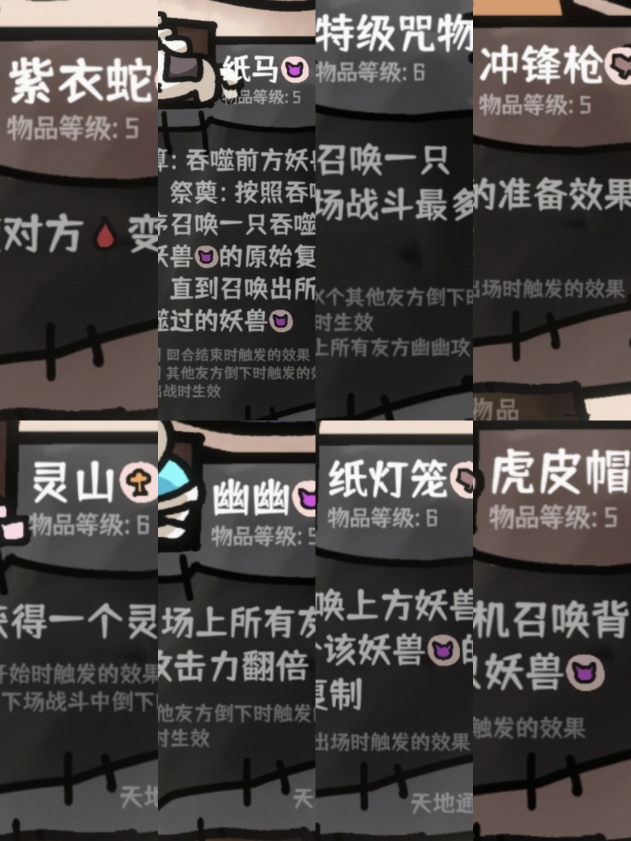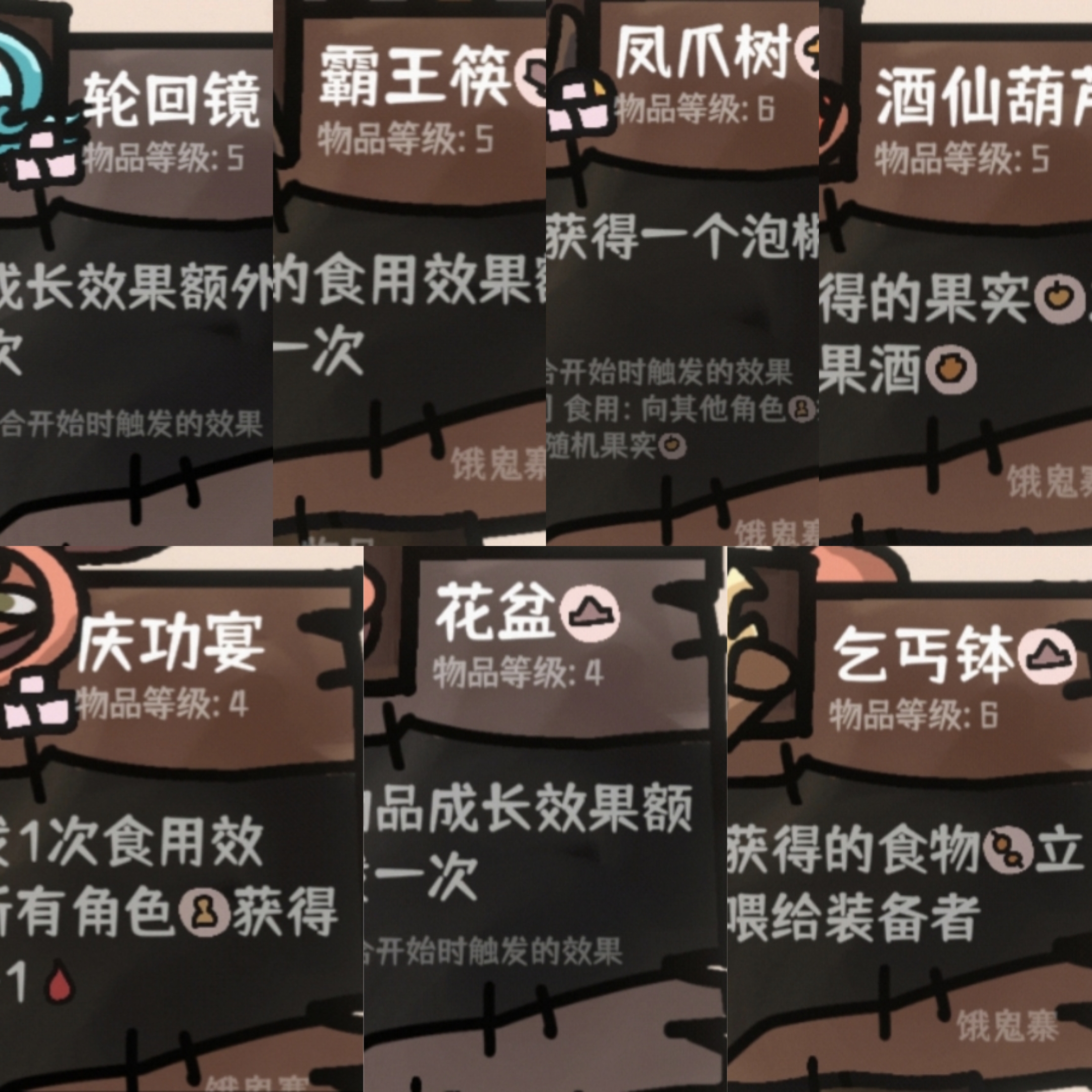 5、牛夫人《恶鬼寨》:核心人物:貔貅,前期猪头+多获取任意果树+花盆酒桶过度,56级出凤爪喂貔貅即可