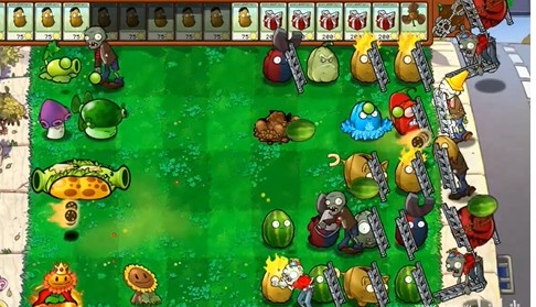 4、并对遇见的第一个正常高度植物搭上梯子(只会搭一个,其他的在被击落时消失)