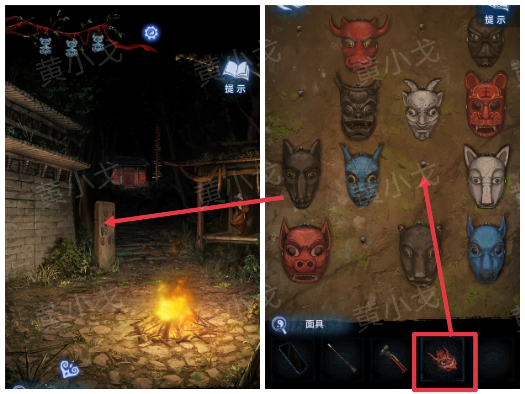 6.点击面具墙,挂上【面具】,打开旁边建筑的门