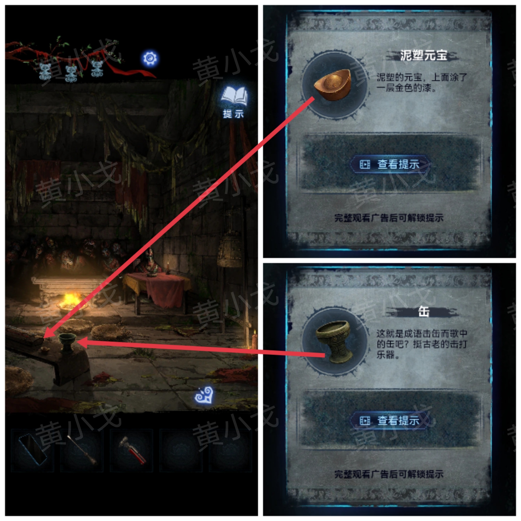 8.拾取琴桌边上的【缶】和【泥塑元宝】