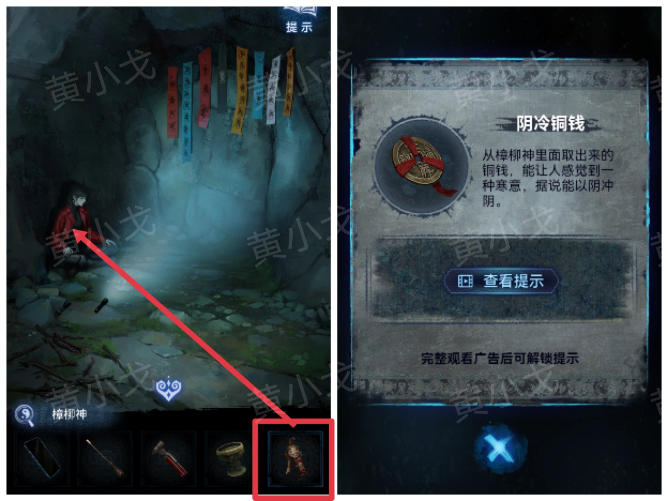 10.拿出【手机】,看到樟柳神;完成小游戏,获得【樟柳神】