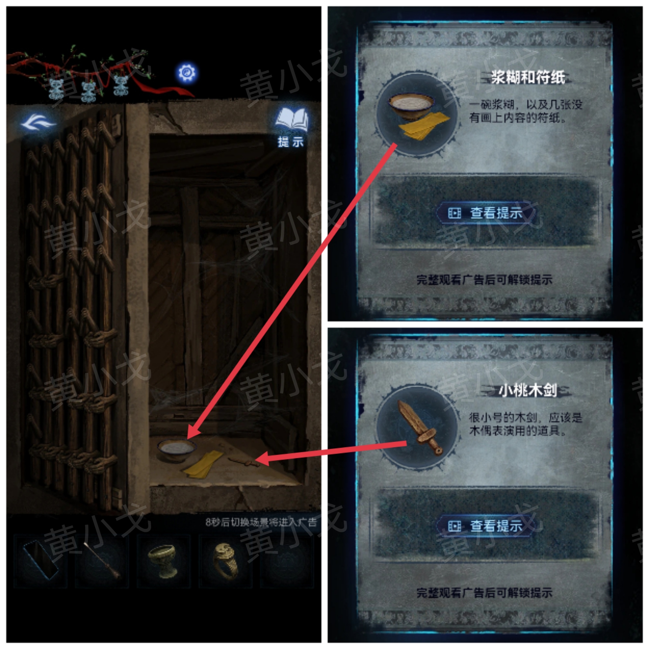 16.打开暗格,获得【浆糊和符纸】和【小桃木剑】