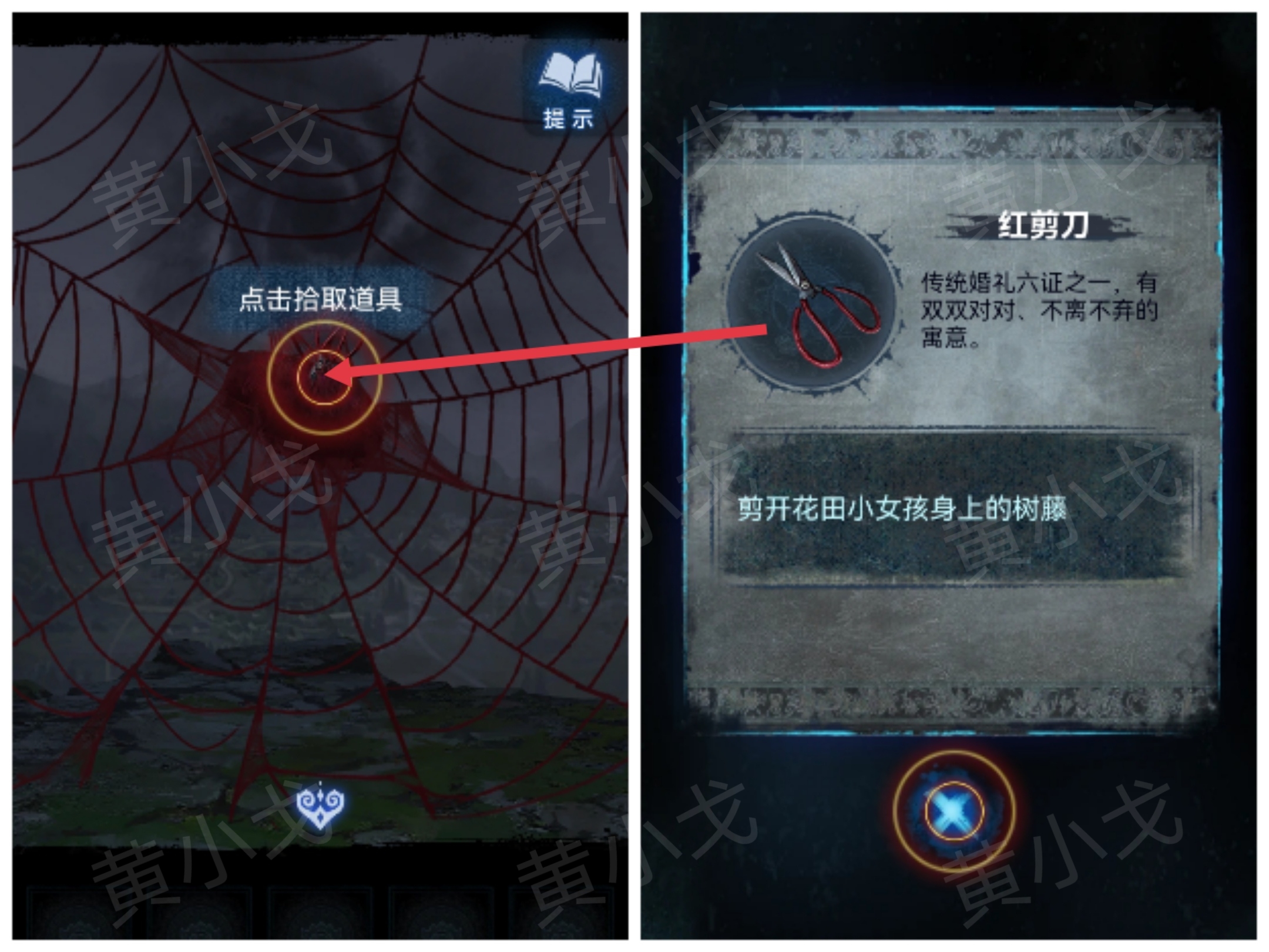 1.在山崖边的红线团中取出【红剪刀】