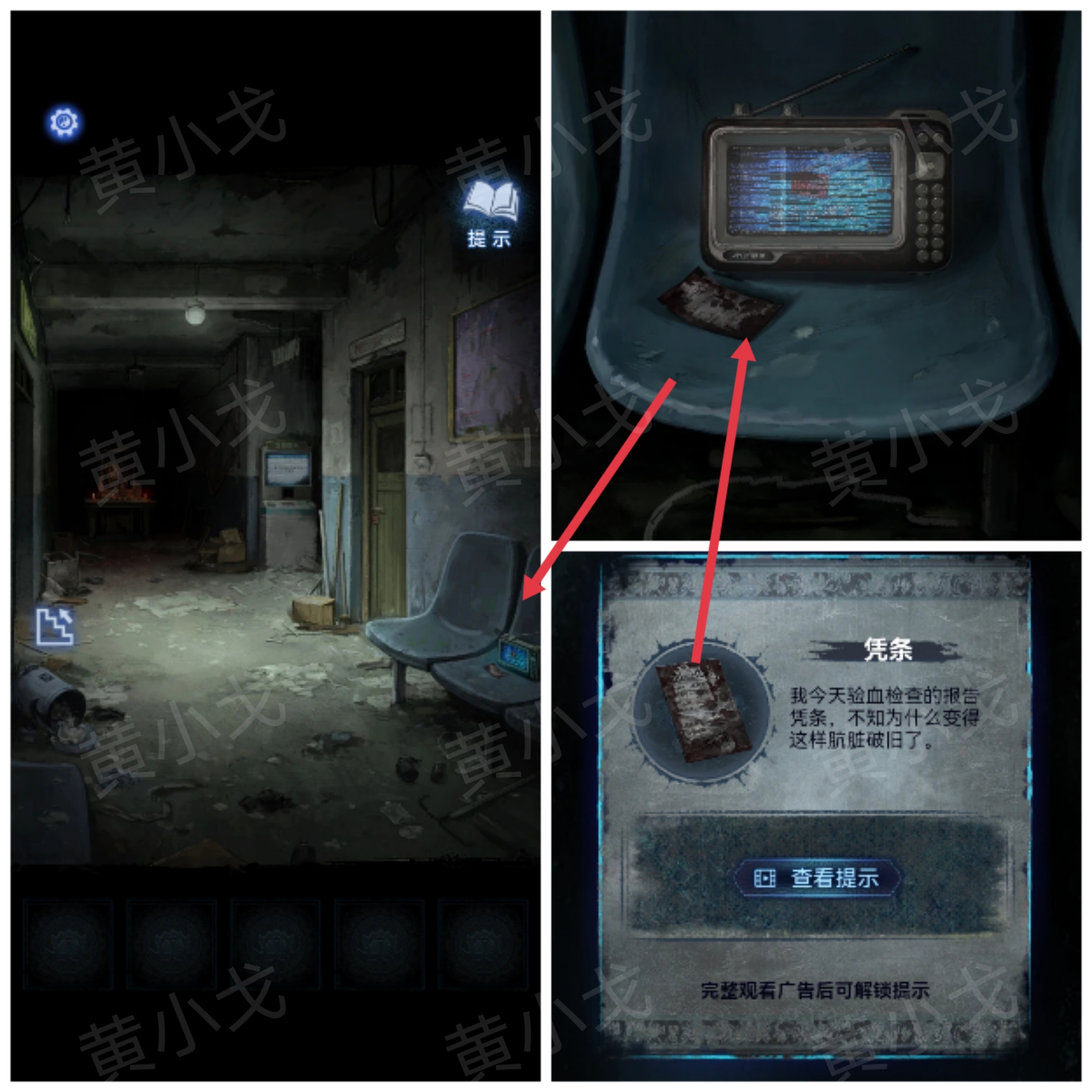 1.点击椅子,获得【凭条】