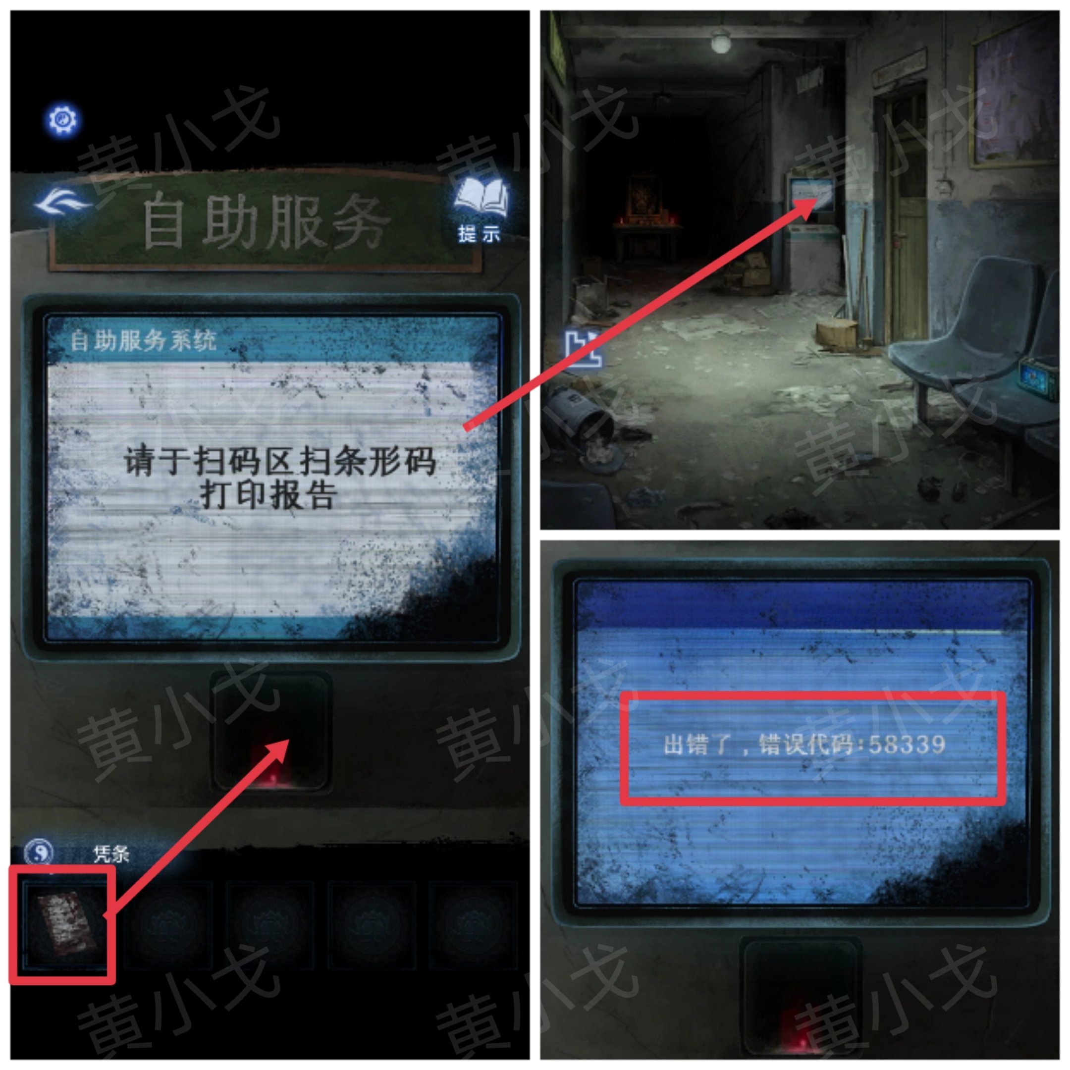 2.点击自助服务机,刷【凭条】,获得线索