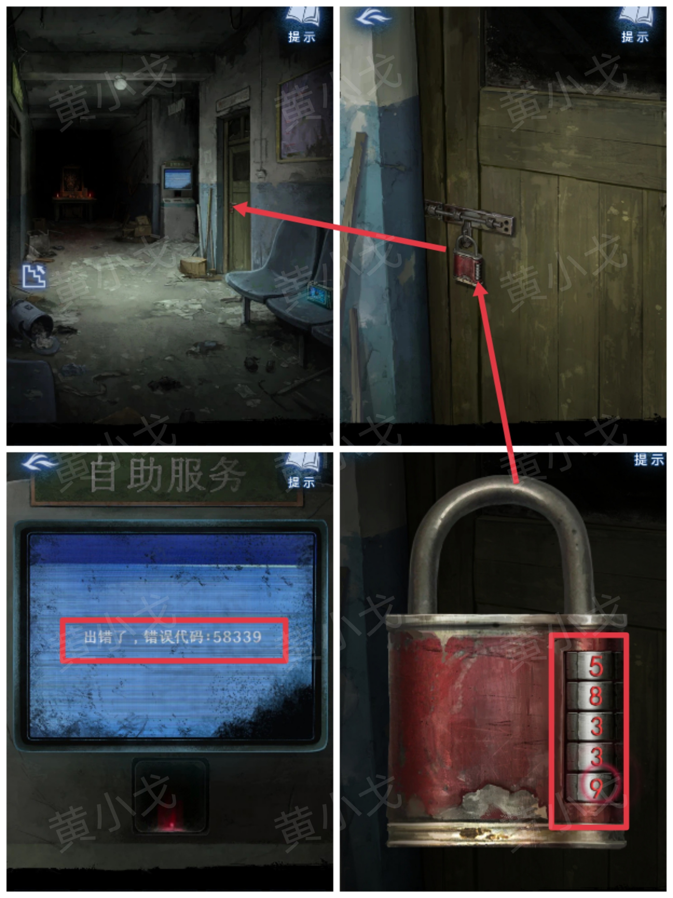 3.点击右侧房间门上的密码锁,输入密码:58339,打开门