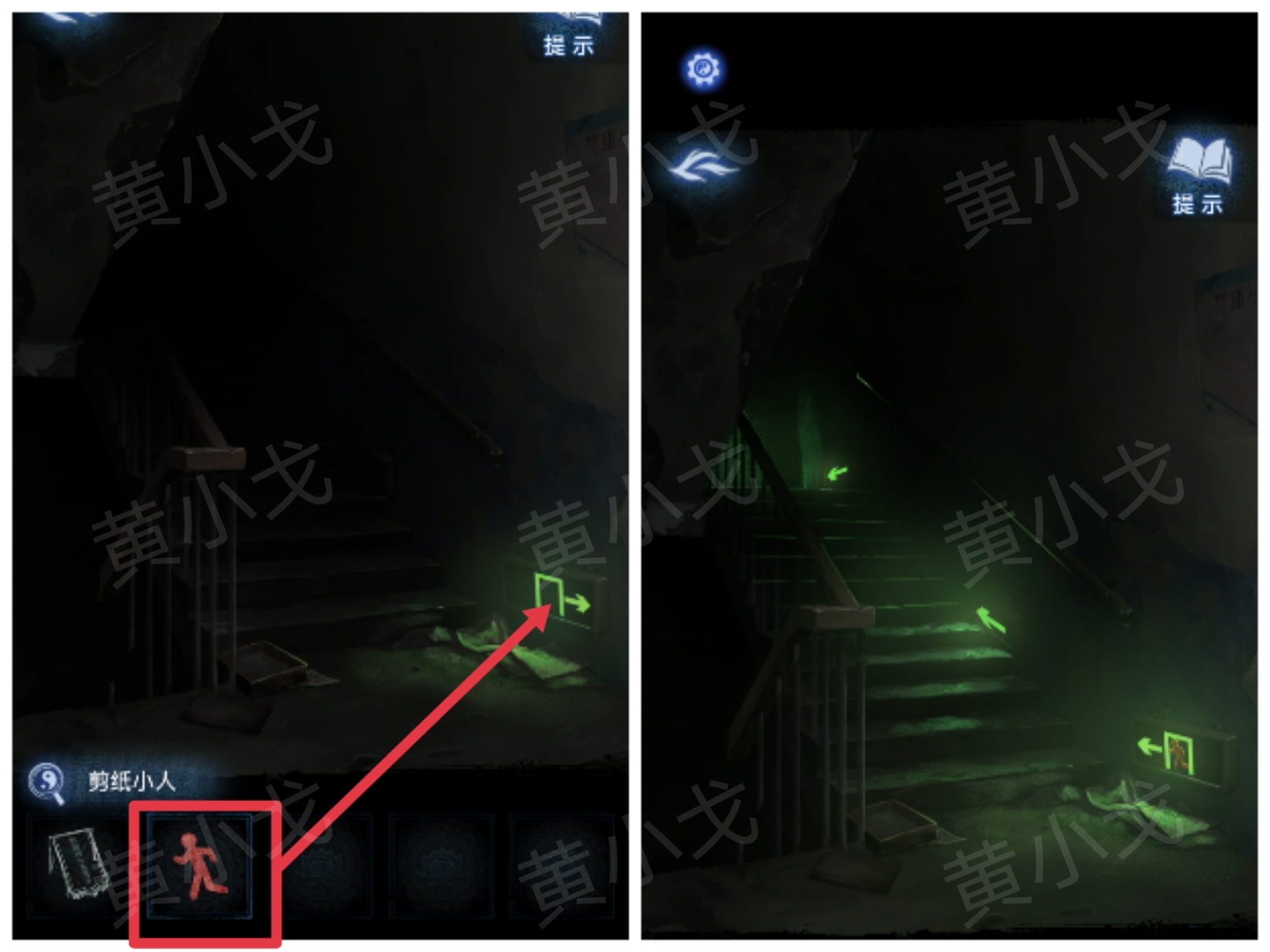 7.将【剪纸小人】放到指示灯上,去到二楼