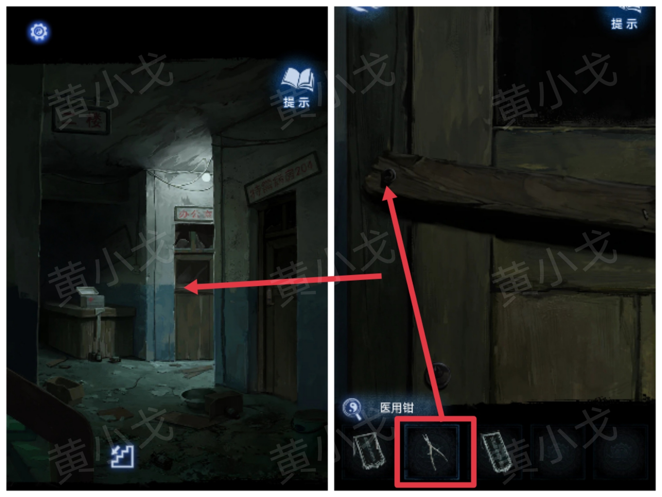 9.点击办公室的门,用【医用钳】拔掉木板上的钉子,打开办公室的门(有小高能?)