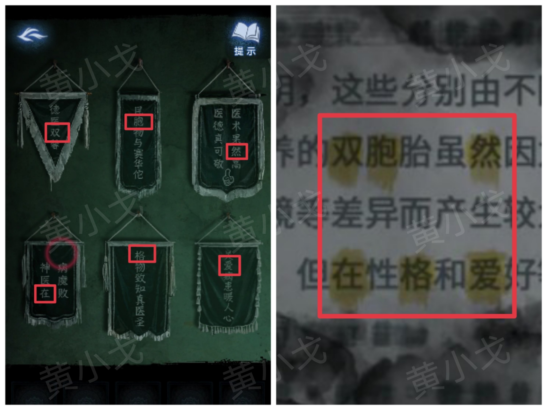 12.根据科普上的线索和锦旗上的字,调整锦旗的位置
