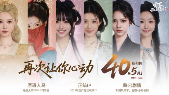 两年前用"六个美女包围你"颠覆影游圈的黄金团队,此次更是邀请了“完蛋”系列的多名女主回归——钟晨瑶、夏天、羽翎,加上王涵的强势加盟,堪称互动影游的最强卡司阵容。如此顶配阵容,产品首发仅需40.5元,全民心动大狂欢!