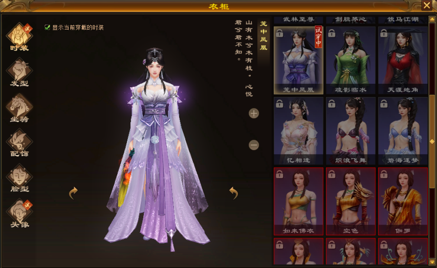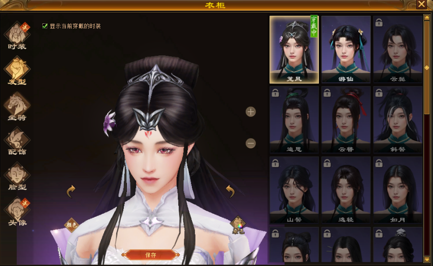 1.(女)头像-醉晚意(图3-1)、(男)头像-问剑(图3-2)、(女)定颜珠:语嫣、笼凤发型图(图3-3)、单人动作:弹琴(图3-4)、(女)时装:笼中凤凰(图3-5)